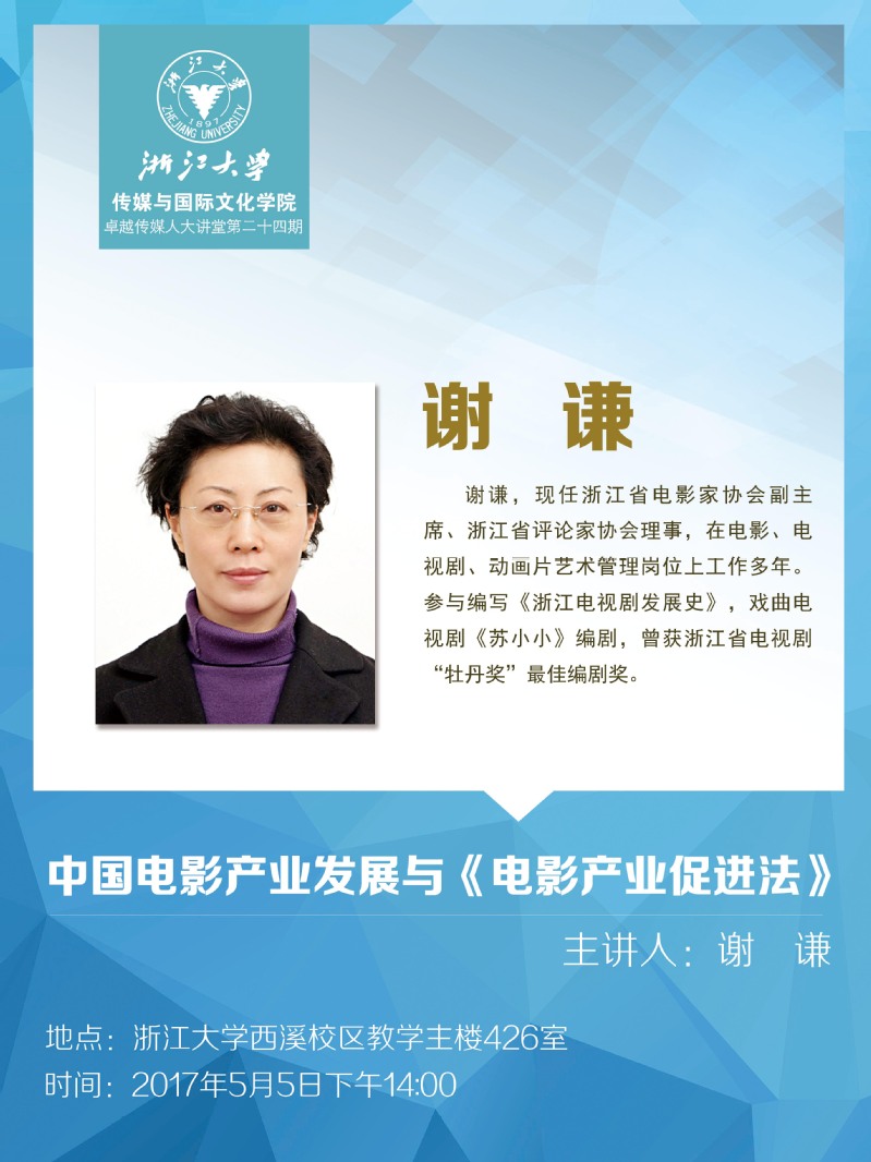 卓越传媒人大讲堂第24期:中国电影产业发展与《电影产业促进法》 主讲人:谢谦