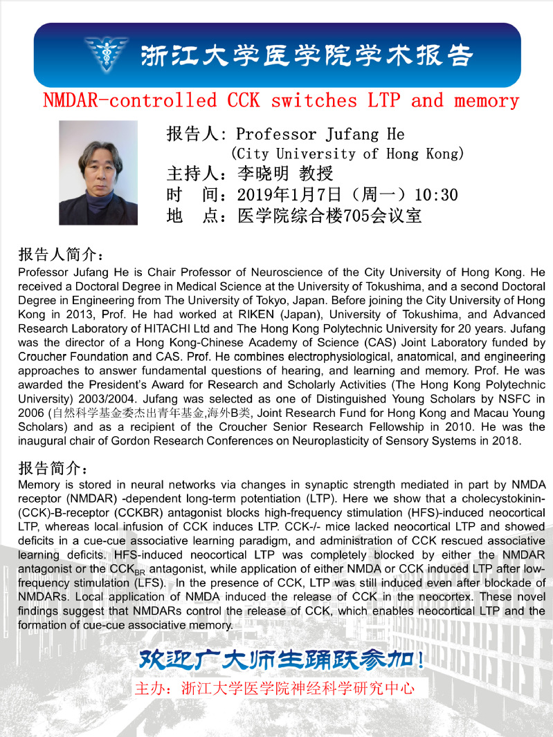 【基础医学】神经科学中心作学术报告——NMDAR-controlled CCK switches LTP and memory