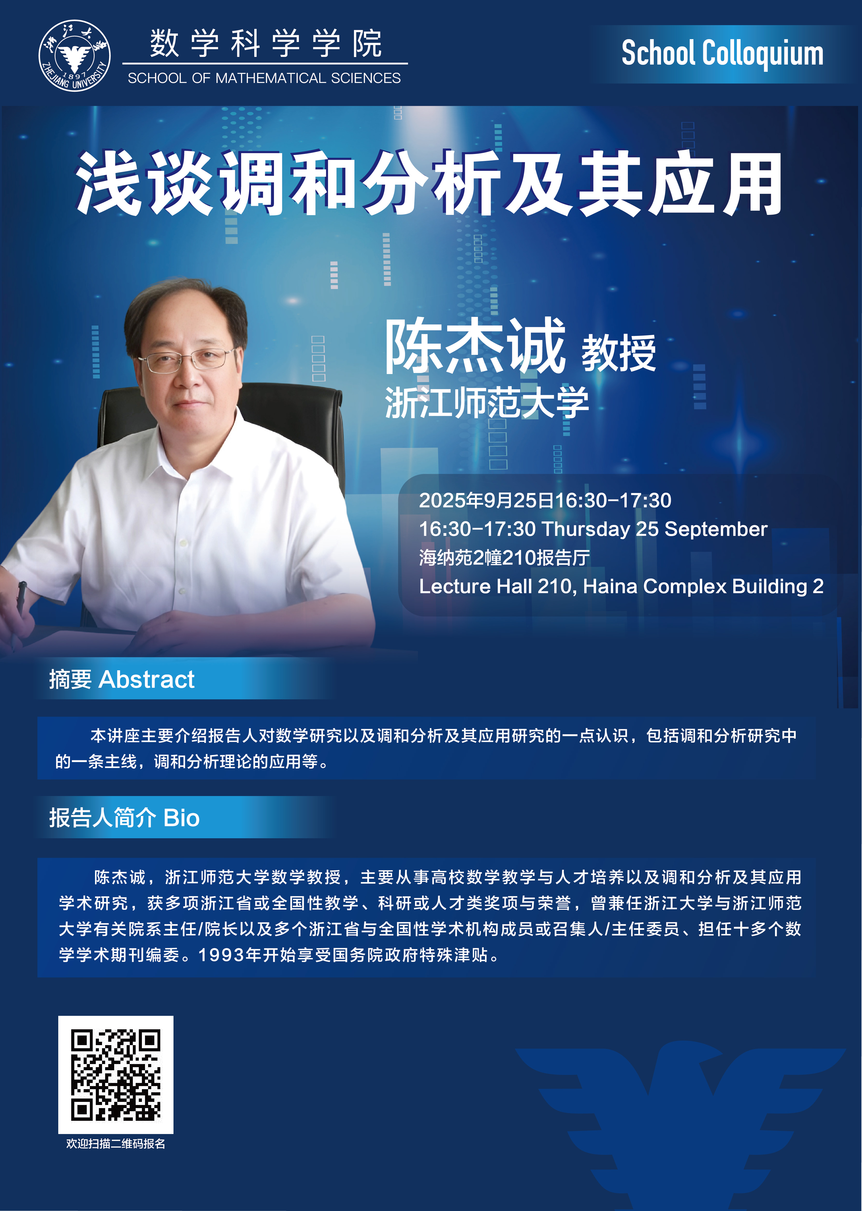 【数学学院】陈杰诚:浅谈调和分析及其应用