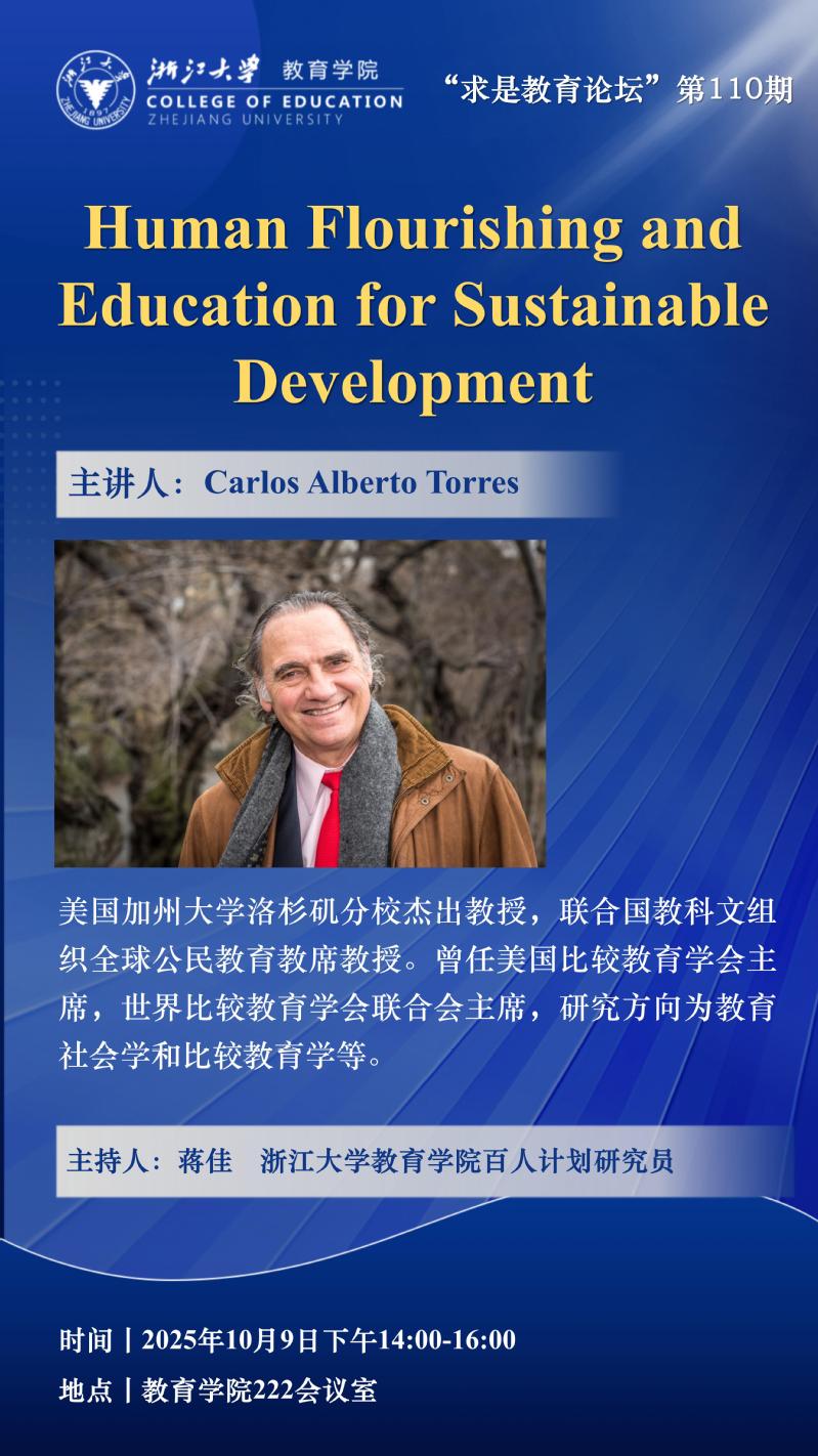 【教育学院】“求是教育论坛”第110期丨Carlos Alberto Torres:Human Flourishing and Education for Sustainable Development