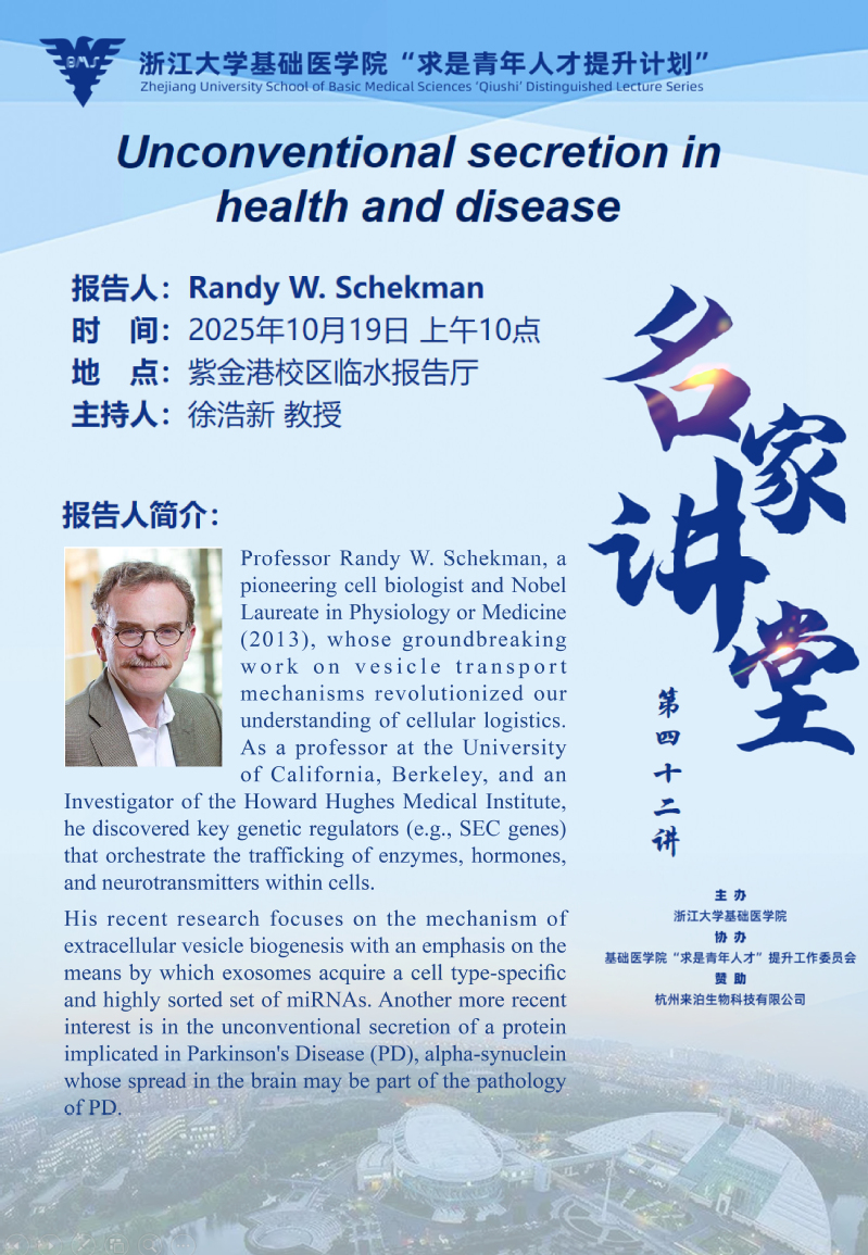 【基础医学】名家讲堂 | Randy W. Schekman :Unconventional secretion in health and disease