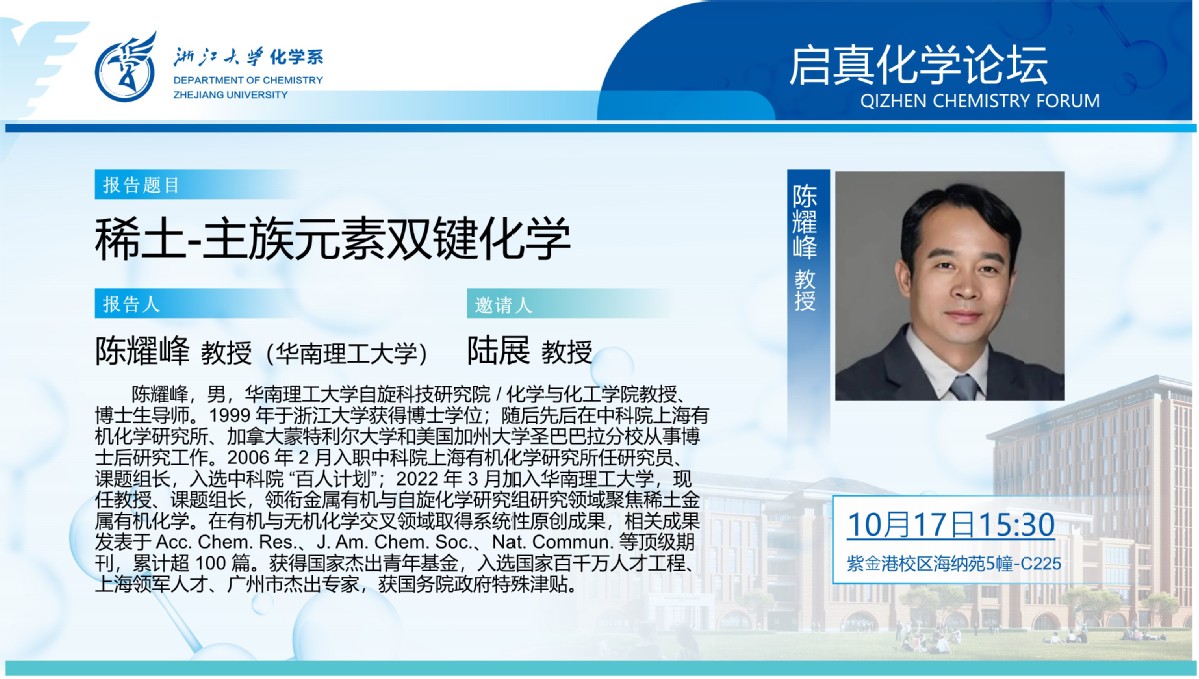 【化学系】启真化学论坛:陈耀峰 教授(华南理工大学)
