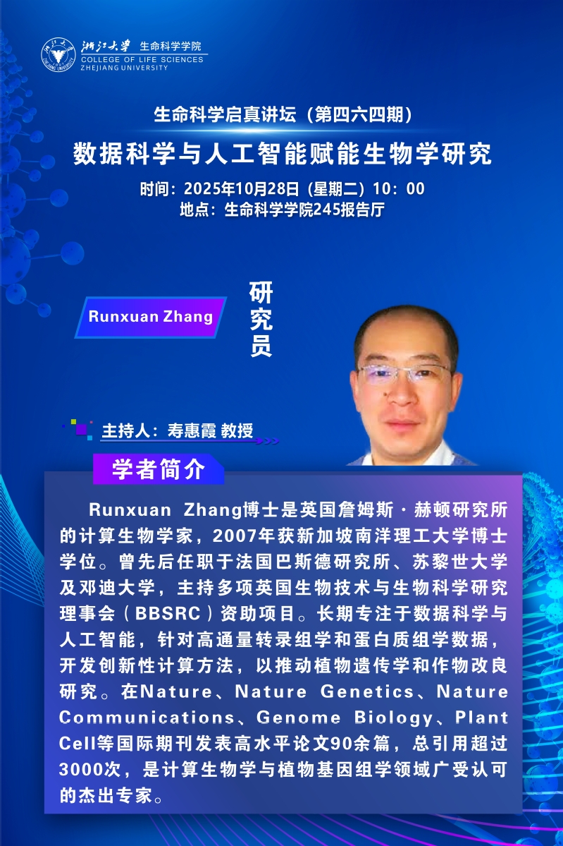【生科学院】生命科学启真讲坛--Runxuan Zhang研究员学术报告