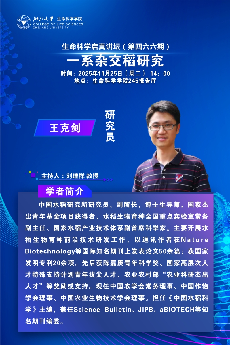 【生科学院】生命科学启真讲坛--王克剑研究员学术报告