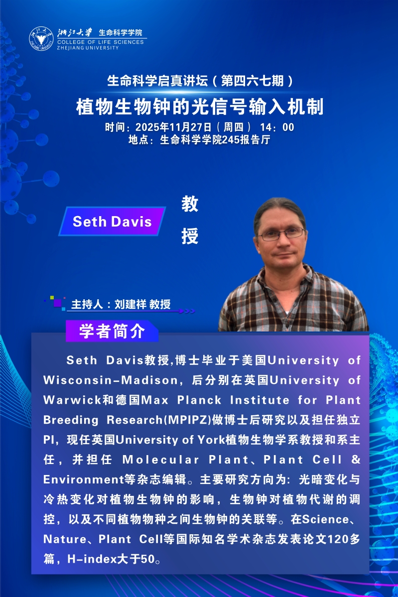 【生科学院】生命科学启真讲坛--Seth Davis教授学术报告