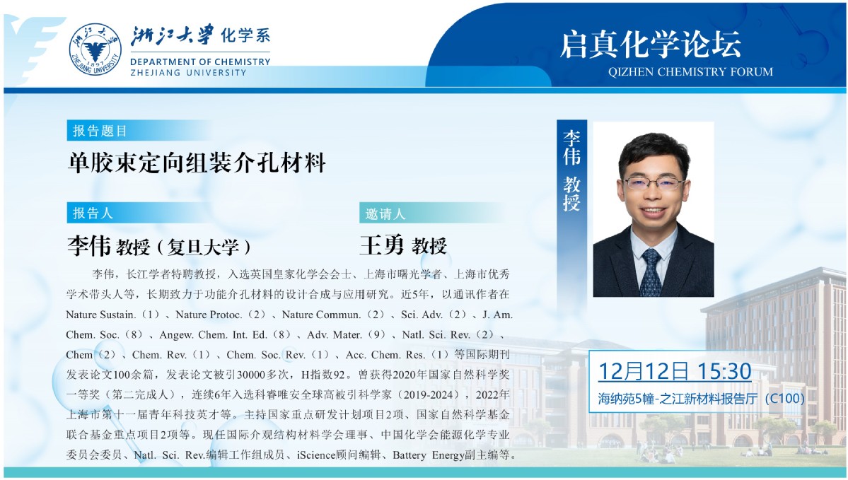【化学系】启真化学论坛:李伟 教授(复旦大学)