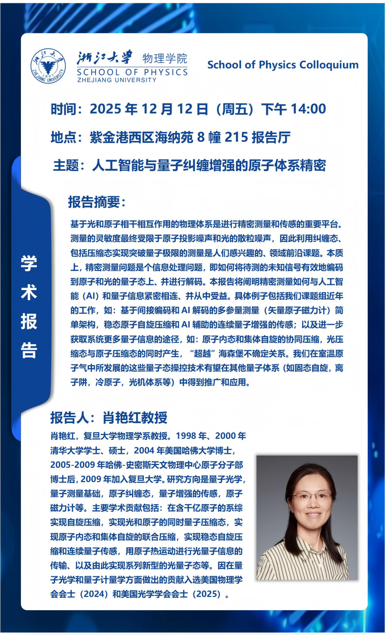 物理学院肖艳红学术报告的通知(School of Physics Colloquium)
