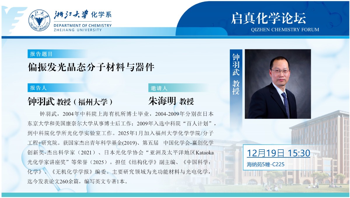 【化学系】启真化学论坛:钟羽武 教授(福州大学)