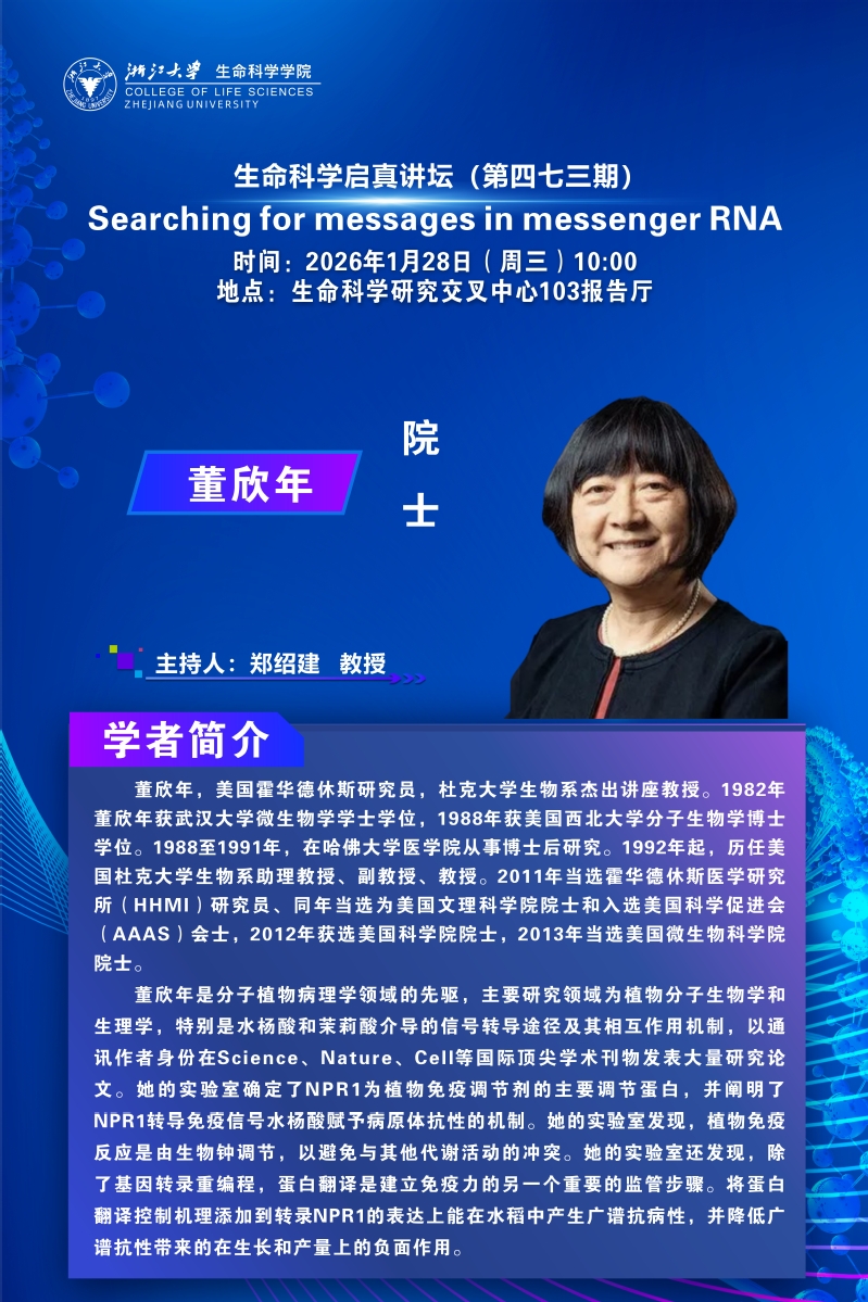 【生科学院】生命科学启真讲坛--董欣年院士学术报告