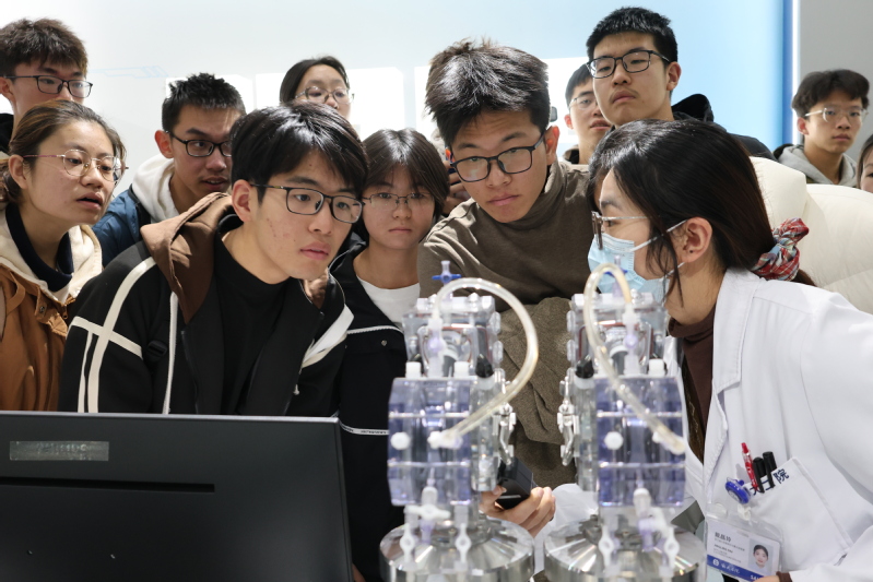 脑机智能实验室祁玉、江海腾等研究员的专题报告,给学生勾勒出清晰而生动的脑机交互蓝图;能源高效清洁利用实验室岑建孟老师解析的能源前沿研究与尖端设备,让学生读懂绿色发展密码;工业控制技术实验室邀请郭雷院士给学生分享和解析了仿生智能技术的实践意义;经血管植入器械实验室计剑教授的临床案例与手术模拟,让医工交叉的魅力直观可感,科研种子在学子心中生根。还有区块链实验室的大数据平台、极端光学实验室的光学技术、传染病重症诊治实验室的疫情防控成果、硅及先进半导体材料实验室的领跑历程等,不仅拓宽了学生的科研视野,感受到科研氛围,更让他们深刻体会到肩负为国家科技创新贡献力量的担当和使命。